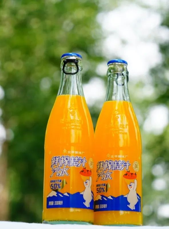 「鲜榨桔汁汽水」含气的果汁饮料,每瓶汽水中桔汁含量高达 50%。此次不光升级了口感配方,瓶身也进行了一次复古风的升级,高品质果汁汽水,全程低温冷链,一口浓浓桔汽,够爽又够味!